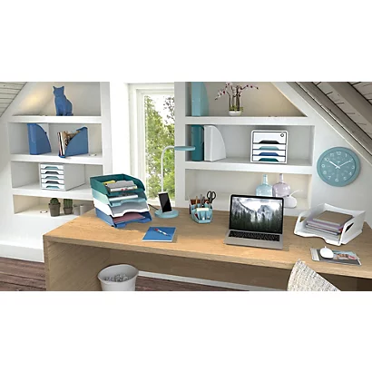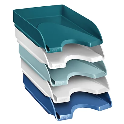 Ces bacs à courrier peuvent accueillir jusqu’à 450 feuilles et acceptent les documents jusqu’au format 24 x 32 cm. Ils conviennent également pour un rangement de pochettes à élastique.