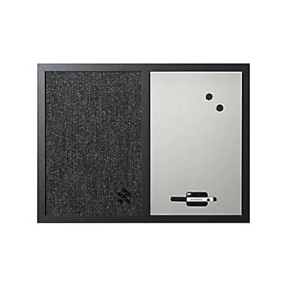 - Le tableau double Bi-Office est un tableau polyvalent qui combine un tableau d’affichage et un tableau d’écriture effaçable à sec, facile à nettoyer. La surface en feutrine est idéale pour épingler des plannings, notes, photos, présentations, graphiques, références et listes de tâches et vous permet de lire en toute simplicité les documents qui peuvent être épinglés au format portrait ou paysage. La surface d’écriture grise s’utilise avec des feutres et permet un effaçage à sec haute qualité et offre une surface magnétique laquée. Il dispose d’un cadre en MDF de 32 mm qui le rend durable. Pratique et léger, ce tableau s’utilise partout où vous le souahitez, au bureau ou à la maison.