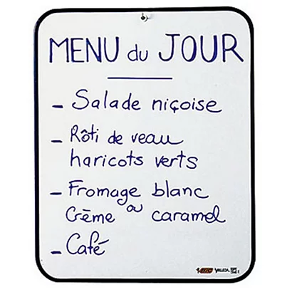 - Un classique de la marque Velleda : l’ardoise blanche. Montable au mur, elle permet de répondre à tous les besoins d’affichage ou de présentation.