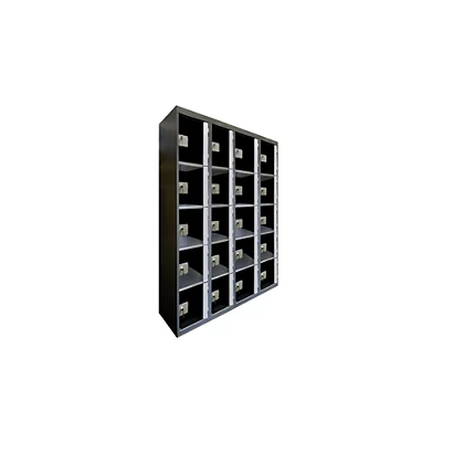 Fermeture Serrure à clé – monnayeur 2 : clé prisonnière libérée par une pièce de 2 . Equipement 1 aération dorsale dans chaque case 1 Porte ajourée par case avec une vitre plexiglass épaisseur 6mm rivetée. Finition Dégraissage par lessivage phosphatant. Corps et portes laqués en peinture acrylopolyuréthane bi-composants cuite au four. Tablettes intermédiaires en tôle galvanisée à chaud, non peintes.