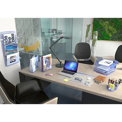 - Le pot à crayons CEP 580 i Ice Blue offre un design contemporain fonctionnel et élégant qui ajoute une note de style à tous les environnements de bureau.