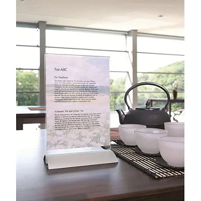 Présentoir de documents conçus pour valoriser la présentation d’un document au format A5.