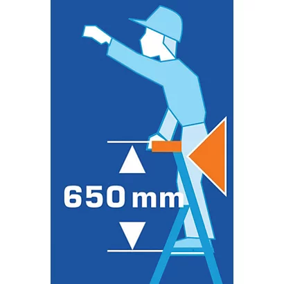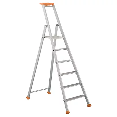 Composé de 6 marches plateforme incluse, d’un porte-outils en polyéthylène moulé, d’un support perceuse, visseuse et d’un crochet porte-seau 10 Kg maxi.