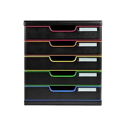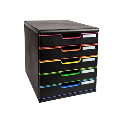 - Il est facile de créer encore plus d’espaces de rangement avec le module de rangement 5 tiroirs Modulo A4 d’Exacompta.