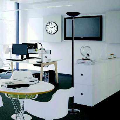 Son socle de faible encombrement garantit la stabilité de l’ensemble, même à proximité de zones de passage. Fût très fin donnant au produit une allure légère et discrète.