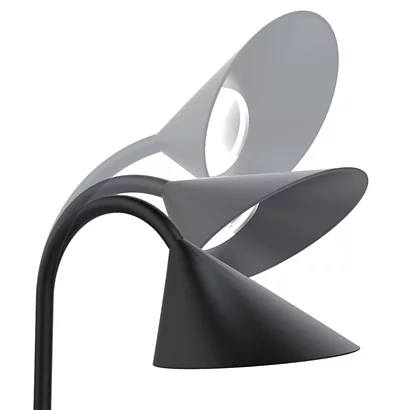 La lampe allie sobriété et modernité dont la forme de la tête favorise la diffusion large sur le plan de travail. Elle dispose d’une partie flexible au sommet du bras ce qui permet d’orienter aisément la tête en tous sens.