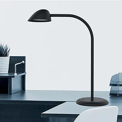 Son flexible et sa tête de forme elliptique favorisent la diffusion de la lumière sur le plan de travail et s’intègrera à toutes les tailles de bureau.