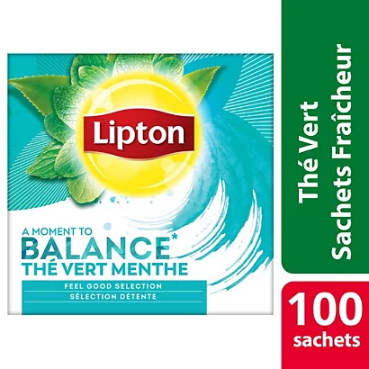 - Ces sachets de thé vert Lipton® contiennent de vraies feuilles de menthe qui apportent un arôme et une saveur puissants et doux. Profitez de chaque gorgée de ce thé frais et délicieux, infusé à la menthe. Les effets relaxants de cette boisson sont très appréciables, surtout en cas de somnolence ou de fatigue. Pour préparer une tasse de thé, trempez un sachet dans l’eau chaude pendant quelques minutes avant de boire.
