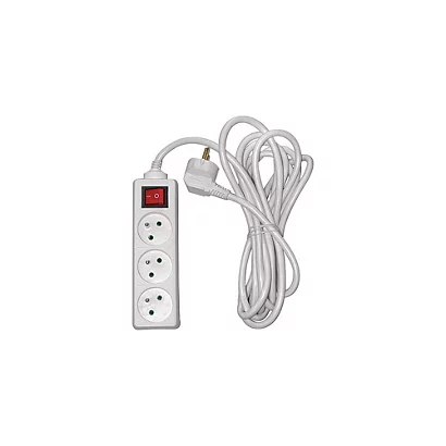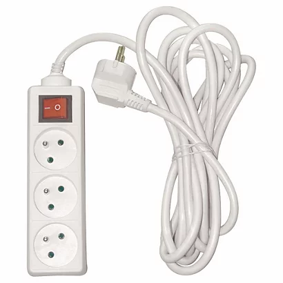 - Bloc en plastique, muni de 3 prises normalisées avec un interrupteur général et une prise de terre sur chacune. Cette multiprise permet la juxtaposition des branchements.