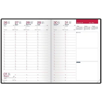 Gérez votre année l’esprit libre avec un agenda professionnel, simple et efficace. Une grille professionnelle à large amplitude horaire et couvrant 7 jours complets.