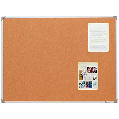 - Fabrication avec un minimum d’énergie et utilisation de matériaux recyclables (bois FSC). Revêtement liège de 1mm. Cadre en aluminium anonisé avec coins en plastique. Fixation des documents par punaises épingles.