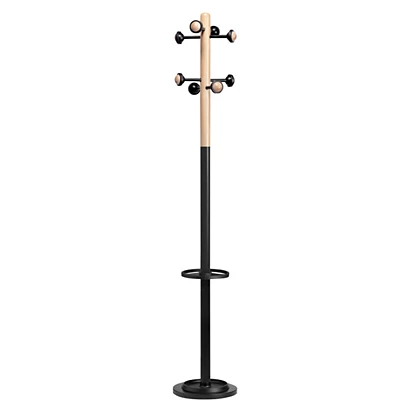 Tête tournante avec 8 patères décalés pour faciliter l’accrochage des vêtements, même si le portemanteau est situé dans un coin du bureau.
