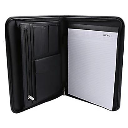 - Ce conférencier de Raja est un outil de travail très pratique pour les professionnels. Il dispose d’un porte-bloc A4, d’une fermeture éclair et de pochettes pour stylos et cartes de visite : il est donc idéal pour prendre ou emporter des notes où que l’on soit. Un compartiment permet également de ranger quelques documents au format A4. En déplacement, en réunion ou durant un congrès, ce conférencier est donc un allié de choix. Il est fabriqué en PVC souple et robuste, avec une finition en simili cuir, ce qui lui donne une touche d’élégance, le rendant ainsi parfaitement adapté à toutes les situations de la vie professionnelle.