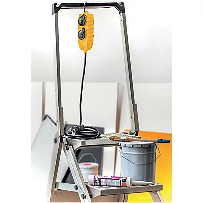 Un crochet métallique est intégré au Powerblock afin de le suspendre sur le mur. Il est également possible de rabattre le crochet et de laisser la rallonge au sol.