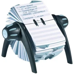 DURABLE VISIFIX VEGA – Fichier De Carte Rotative Pour 400 Cartes De Visite – Couleur Argent/Bleu