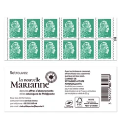5 Carnets De 12 Timbres Postaux Autocollants Marianne Lettre Verte 20 G