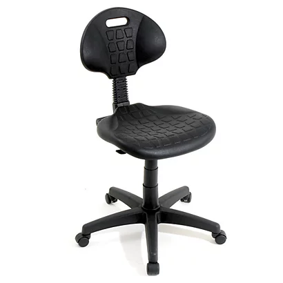 Siège réglable en hauteur de 43 à 55 cm par vérin pneumatique.
