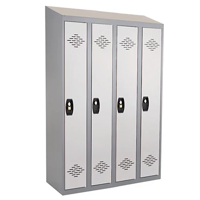 Le vestiaire Industrie propre 4 cases, toit incliné, corps gris, portes grises, livré monté.