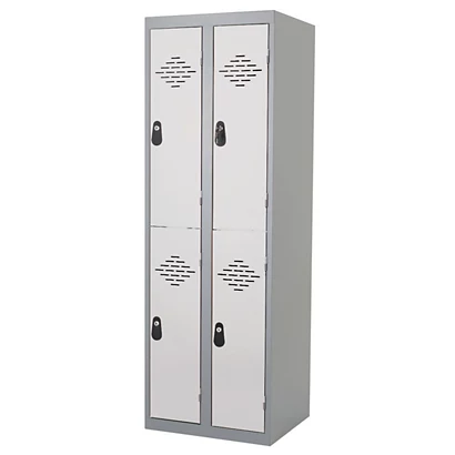 Le vestiaire 2 colonnes 2 cases, corps gris, portes grises livré monté.